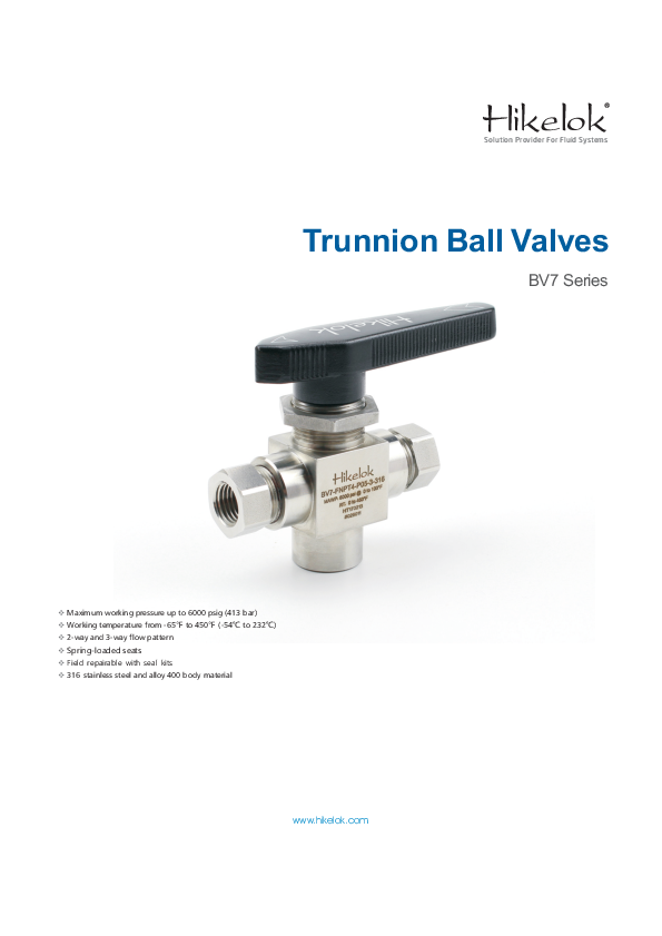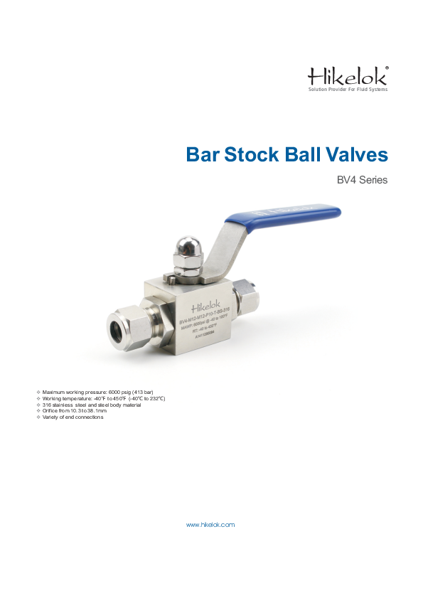 Maximum working pressure up to 6000 psig (413 bar)