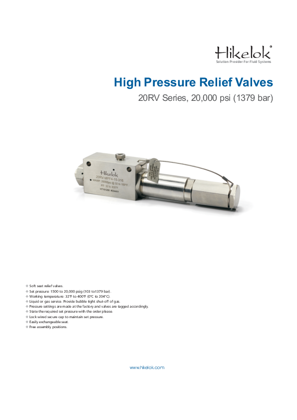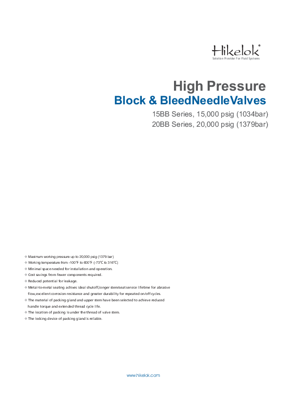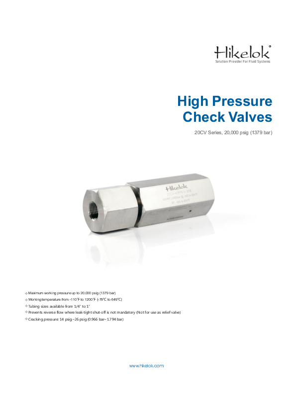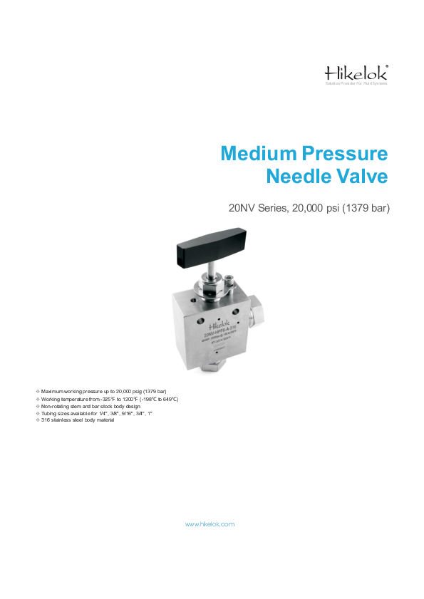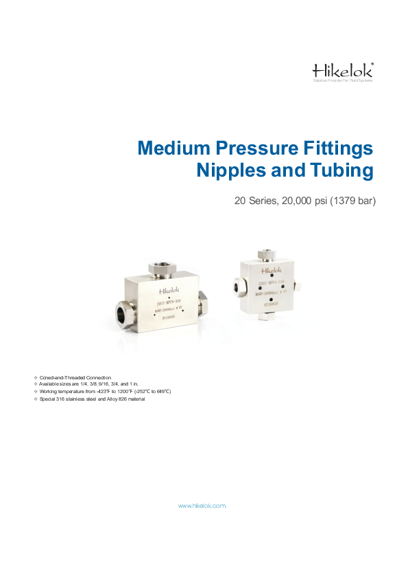 Hikelok 20 series medium pressure fittings are designed for use with 20 series medium pressure valves